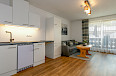 - Küche mit Mikrowelle, Kühl-/Gefrierkombination, Kaffeemaschine (Filter und Kapsel), Wasserkocher, Toaster, Eierkocher und Induktionsherd